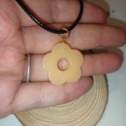 Colgante de resina hecho a mano en forma de flor, color naranja pastel.