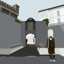 Lámina de ilustración digital de la estatua del Hachero ubicada en Hondarribia, Gipuzkoa.
